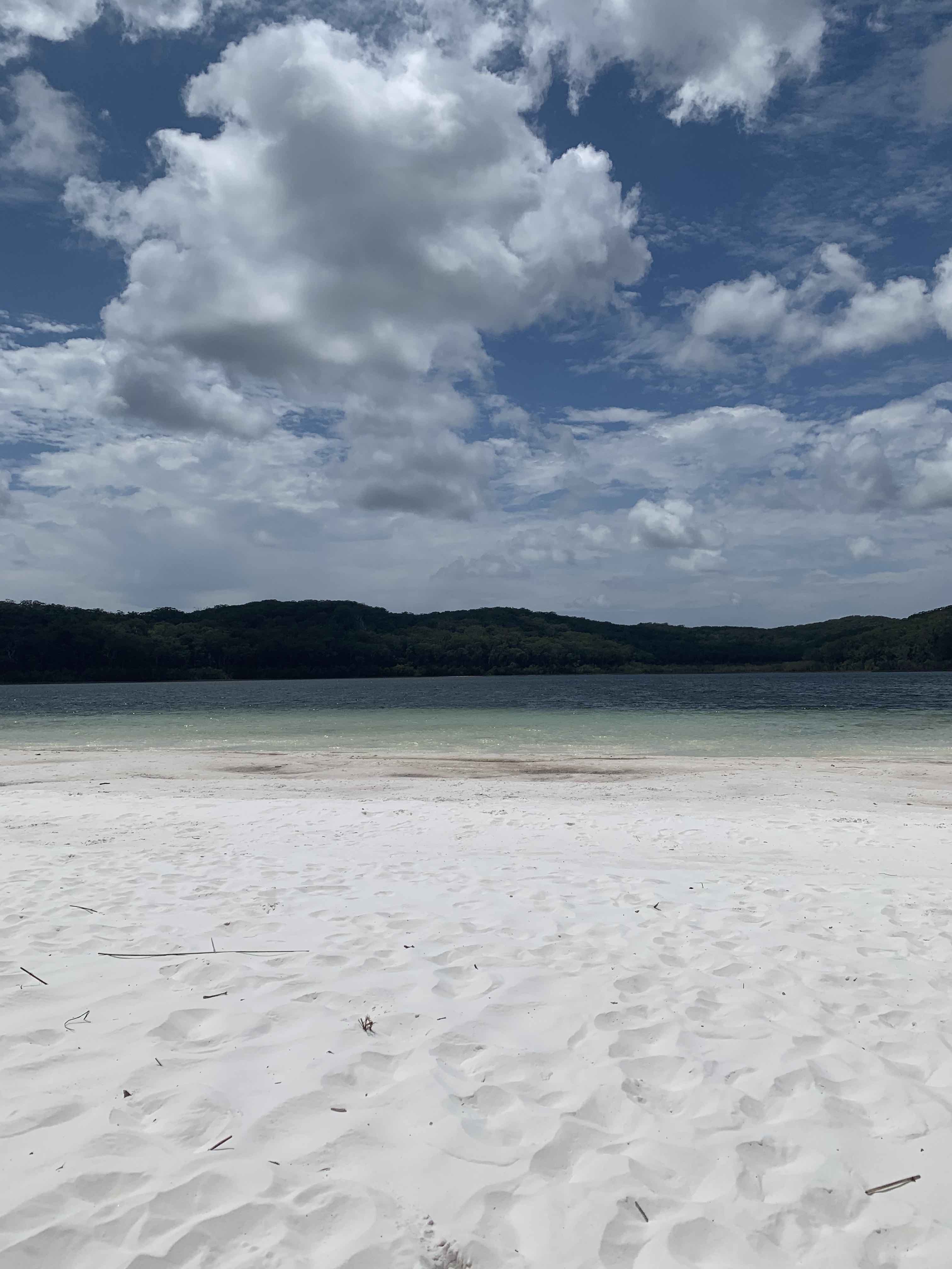 Von Noosa aus sind wir zu unserer ersten gebuchten Tour aufgebrochen (für die wir auch gleich mal 400 AUD pro Person gezahlt haben…) und sind mit einer Gruppe von 15-20 Leuten in Geländewagen aufgebrochen in Richtung Fraser Island. Die Insel ist quasi eine riesige Sanddüne, die in Jahrtausenden durch Sandverwehungen entstanden ist, als sich Sand auf dem Vulkangestein abgelagert hat. Jetzt gibt es einen breiten Strand entlang der Ostküste, der auch die Hauptstraße der Insel ist, und Regenwald, Eukalyptuswälder und Seen im Zentrum der Insel. Das Wasser im Lake Birrabeen und auch in der Eli Creek war unfassbar klar und der Sand am See war sehr fein und richtig weiß – besonders gut also für ein Bodypeeling.