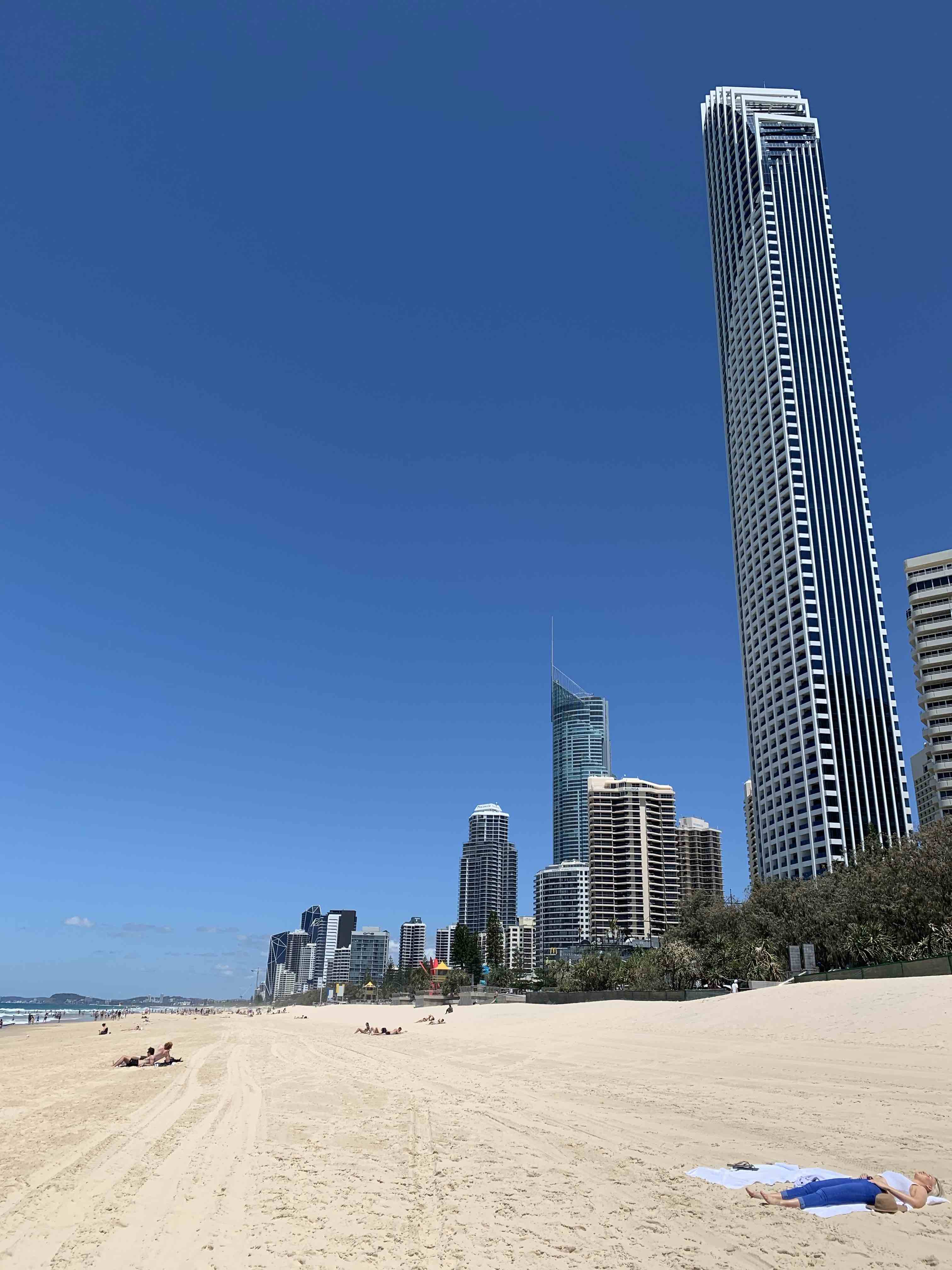 Der Weg weiter Richtung Norden führte uns als nächstes zum Surfers Paradise Beach. Auf dem Weg gab es für uns eine Überraschung – wir haben die Grenze zwischen New South Wales und Queensland überschritten und damit wurden die Uhren auch zurückgestellt und wir haben eine Stunde Zeit gewonnen. Obwohl wir also wieder in Ruhe gefrühstückt hatten in Byron Bay, sind wir trotzdem früh an der Gold Coast angekommen und konnten den ganzen Tag am Strand und an der Promenade genießen.