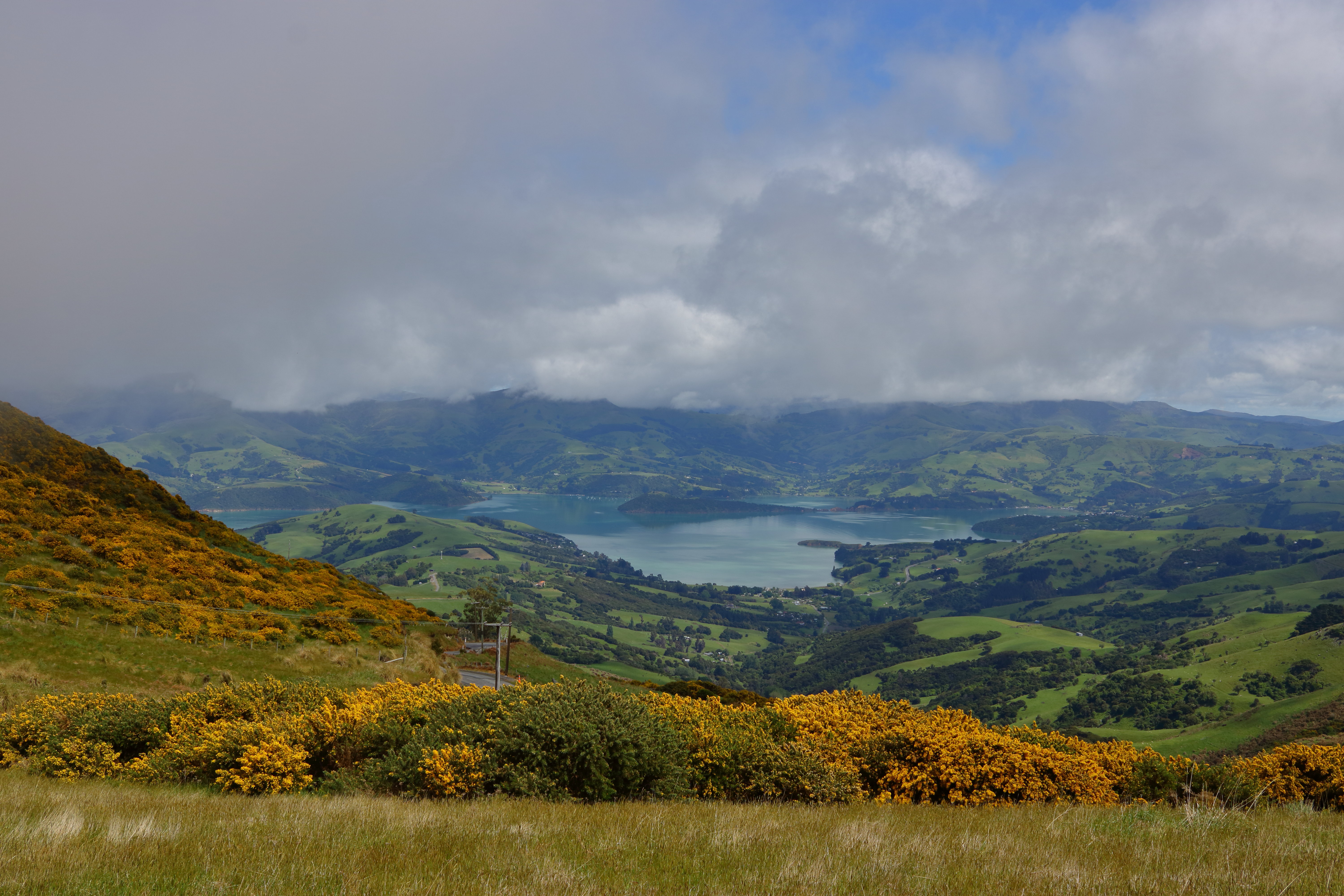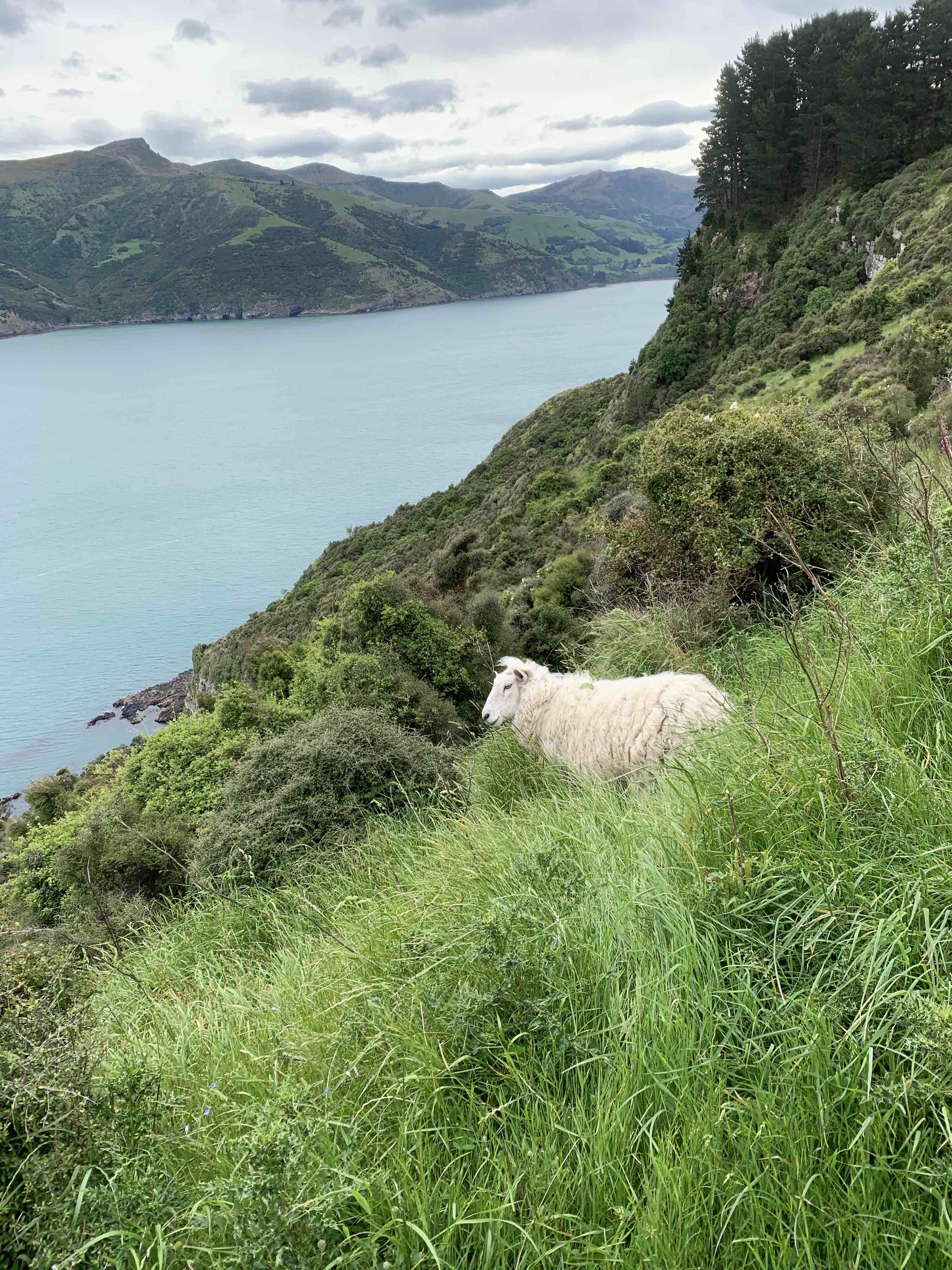 Die nächsten Tage haben wir damit verbracht wieder etwas in den Wanderalltag zu kommen und so sind wir an der Küste entlanggewandert und haben unsere ersten neuseeländischen Schäfchen und Kühe aus der Nähe gesehen. Auf dem Rückweg sind wir über die Hügel gefahren um die Aussicht und die wilde Natur zu genießen, die Hügel waren alle mit blühenden Sträuchern bewachsen und wir hatten immer einen tollen Blick auf die Bucht. In der Nähe von Christchurch sind wir dann einen kurzen Wanderweg hochgegangen zum Bergkamm entlang der Gondola um die Aussicht auf die Stadt auf der einen und die Bucht von Lyttleton auf der anderen Seite zu genießen. Selbst die aufziehenden Gewitterwolken konnten die schöne Aussicht nicht trüben.