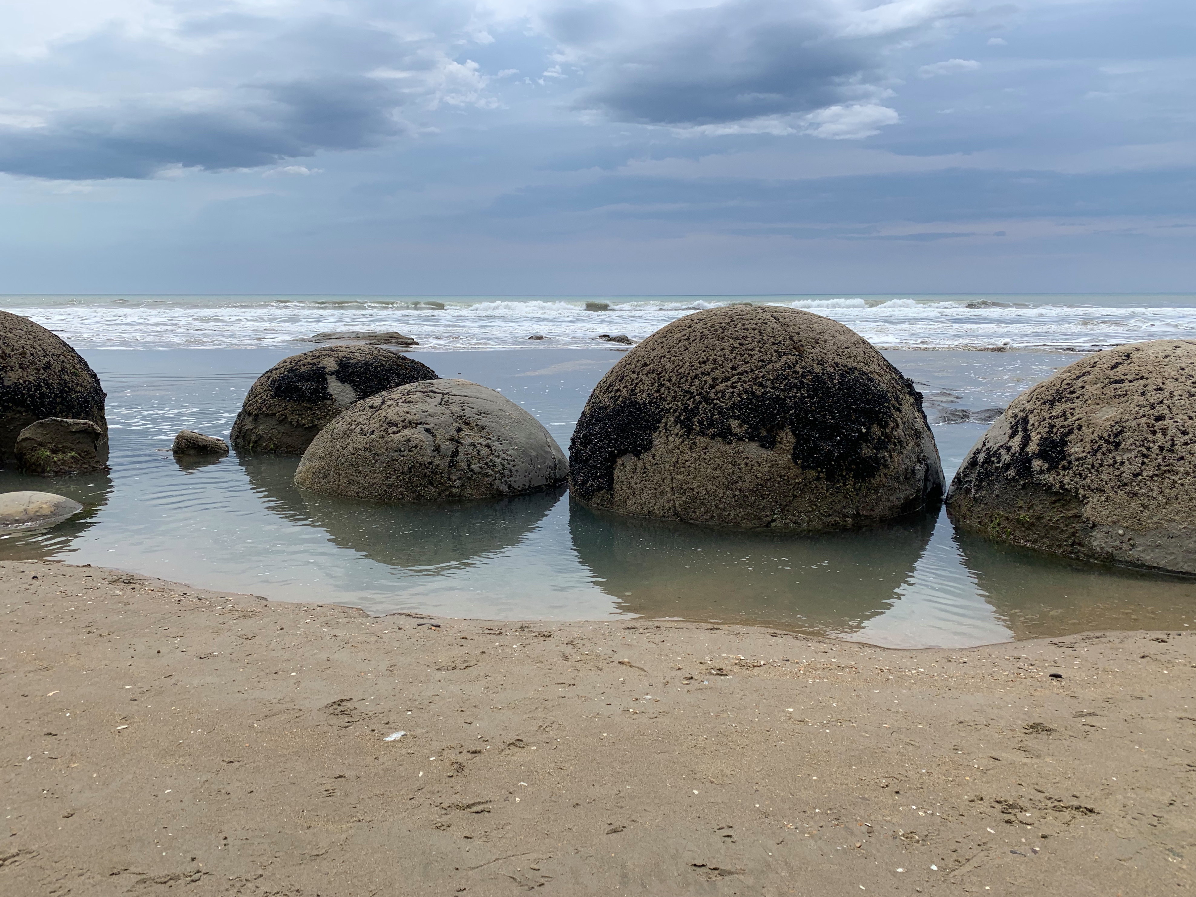 Am nächsten Tag wurde es sogar noch besser: am Strand in der Nähe unseres Campgrounds gab es Hector Delfine, die dort häufig zu sehen sind und wir hatten Glück! Es waren wirklich einige von den kleinen Delfinen zu sehen und obwohl der Wind kalt und auch das Wasser eisig war, sind wir ins Wasser gesprungen um mit den Delfinen zu schwimmen. Sie sind immer wieder von einer Seite der Bucht zur anderen geschwommen, haben in den Wellen gespielt und sind sogar recht nah an uns herangeschwommen. Wir waren viel länger im Wasser als eigentlich gut war, aber es war so schön und hat sich definitiv gelohnt! Danach haben wir uns mit einer heißen Schokolade in der Sonne aufgewärmt und die Kälte war über die Delfine sowieso vergessen.